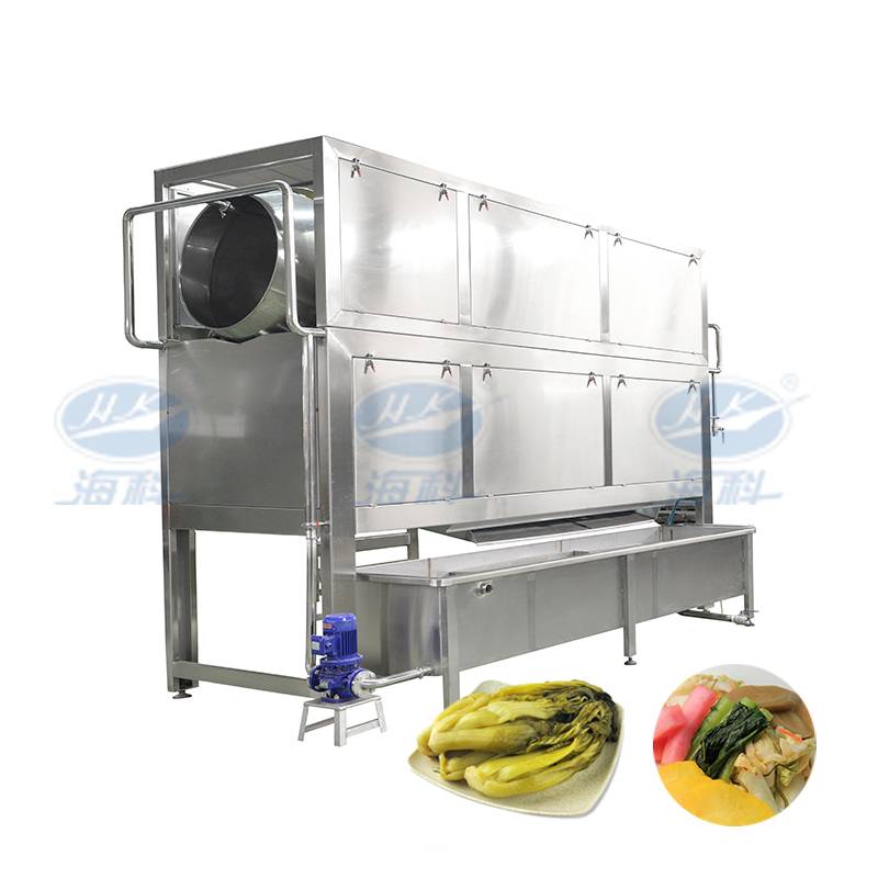 該產(chǎn)品適用于醬腌菜根莖類鹽漬后原料的清洗工藝,采用合理的筋肋滾筒結(jié)構(gòu),配有上噴淋機(jī)構(gòu),并設(shè)置水循環(huán)系統(tǒng),節(jié)約水資源,改善生產(chǎn)環(huán)境,降低勞動強(qiáng)度,是根莖類醬腌菜原料清洗的理想裝備。