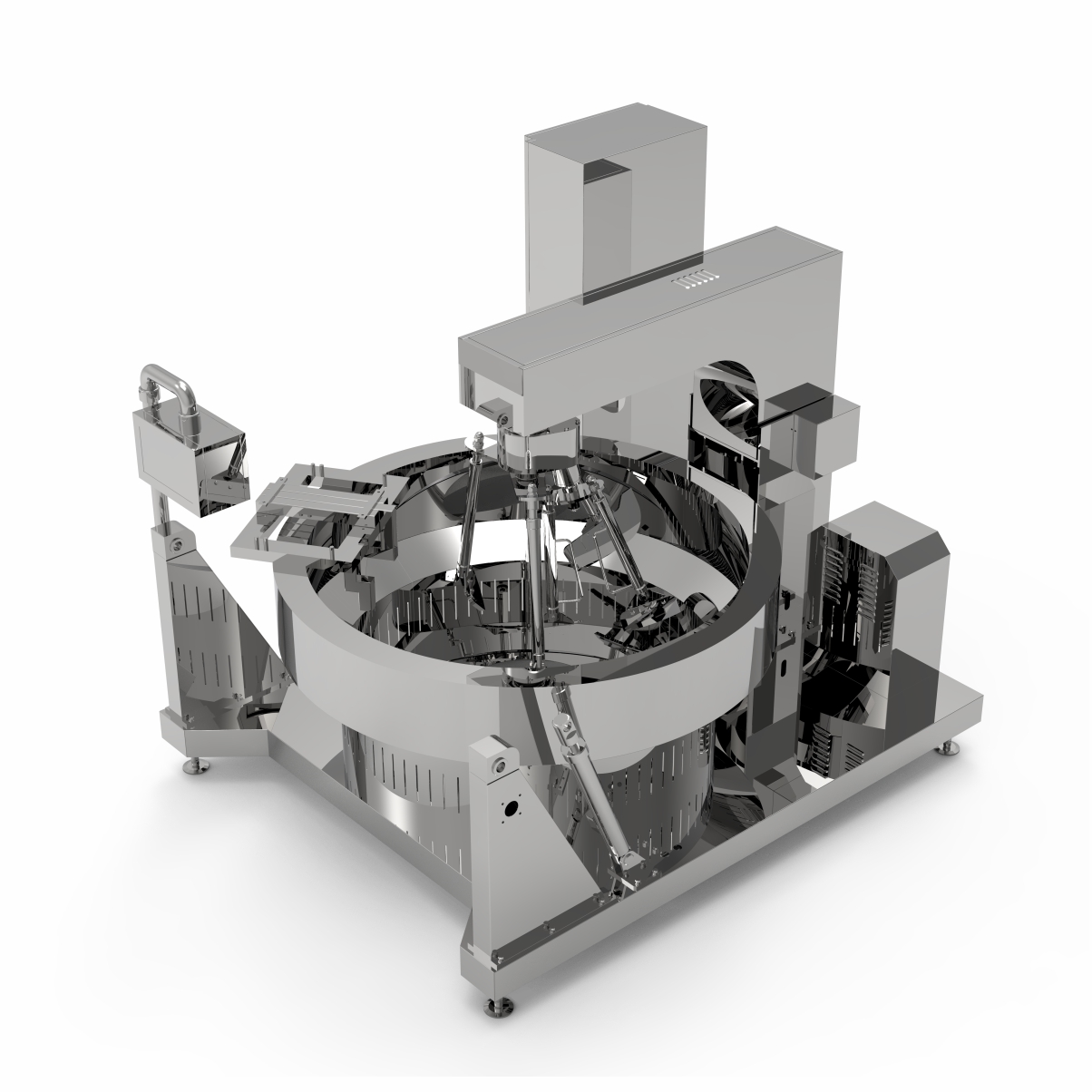 該鍋主體為SUS304不銹鋼材質(zhì),物料炒制采?PLC?動(dòng)控制各炒制流程?藝參數(shù),液壓翻轉(zhuǎn)出料,搭配?機(jī)界?, 操作簡(jiǎn)單,穩(wěn)定可靠,采?新型爐盤設(shè)計(jì)。