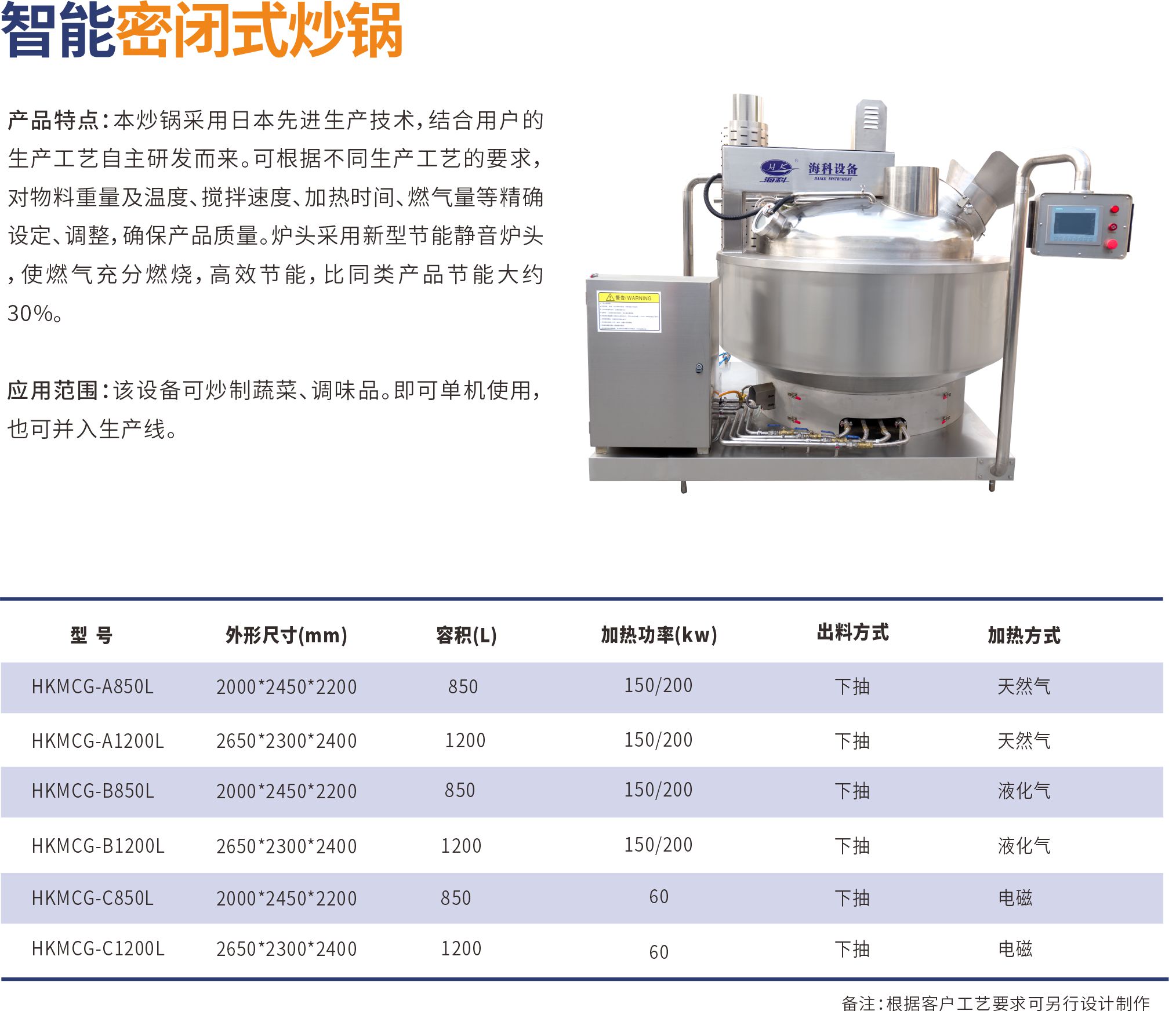 本炒鍋采用日本先進生產(chǎn)技術,結合用戶的生產(chǎn)工藝自主研發(fā)而來??筛鶕?jù)不同生產(chǎn)工藝的要求,對物料重量及溫度、攪拌速度、加熱時間、燃氣量等精確設定、調(diào)整,確保產(chǎn)品質(zhì)量。爐頭采用新型節(jié)能靜音爐頭,使燃氣充分燃燒,高效節(jié)能,比同類產(chǎn)品節(jié)能大約30%。